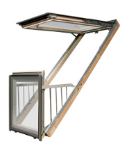 Håndværkerudgangen sikrer en enkel og sikker adgang til taget fra rummet. I toppen af vinduet sidder der en mekanisme, som gør åbningen let, holder rammen på plads under brug og sørger tilmed for, at den ikke smækker i pga vind. Udover at fungere som en udgang, bidrager vinduet også til naturligt sollys ind i rummet samt frisk luft og udsyn. Man kan bestille udgangen som enten højre åbning (FWR) eller venstre åbning (FWL) til samme pris. Rammen kan åbnes i 90 grader. Tilbehør kan tilkøbes. FSC-certificeret.